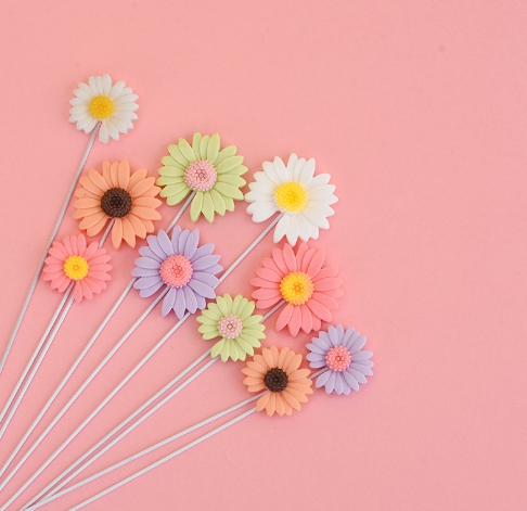 彩色树脂小雏菊洋甘菊蛋糕插件装饰插牌彩色派对用品烘...